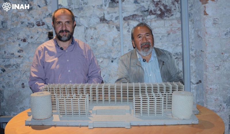 El director del PAU, Raúl Barrera Rodríguez; la jefa de campo del Proyecto del Huei Tzompantli de Tenochtitlan, Lorena Vázquez Vallín, y el coordinador del equipo de antropología física, Jorge Gómez-Valdés, informaron que, tras el cierre de las excavaciones en el inmueble de la calle Guatemala No.24, continúa la fase de gabinete con estudios de antropología física y otras disciplinas.