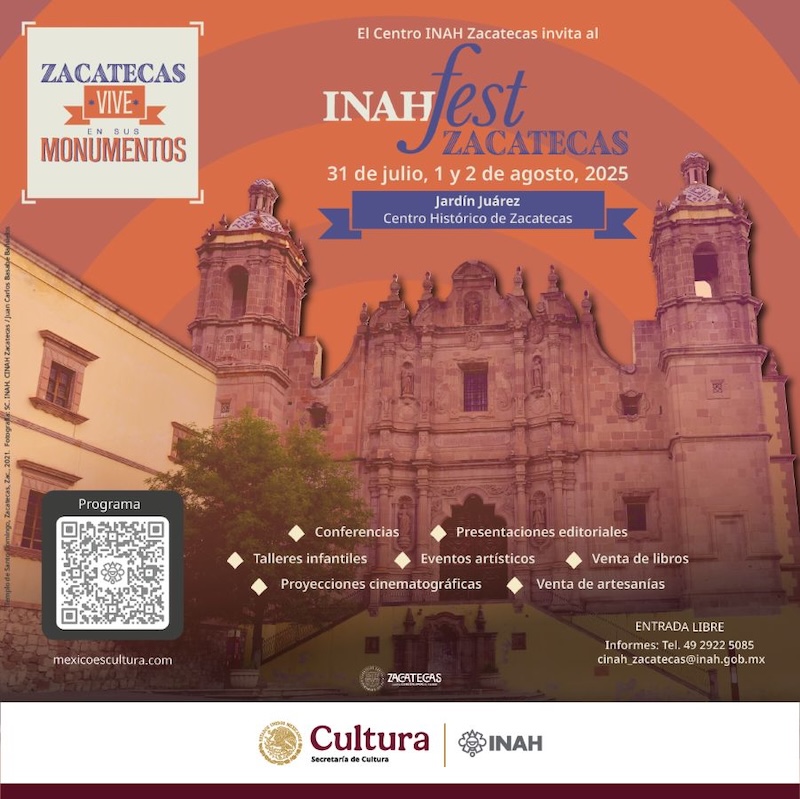 La historia y cultura del estado de Zacatecas serán celebradas en la segunda edición del INAHfest en dicha entidad, con motivo de la reciente declaratoria de su capital como Zona de Monumentos Históricos. Del 31 de julio al 2 de agosto de 2025, se realizará una jornada informativa, educativa y artística en el Jardín Juárez, del centro de la ciudad.