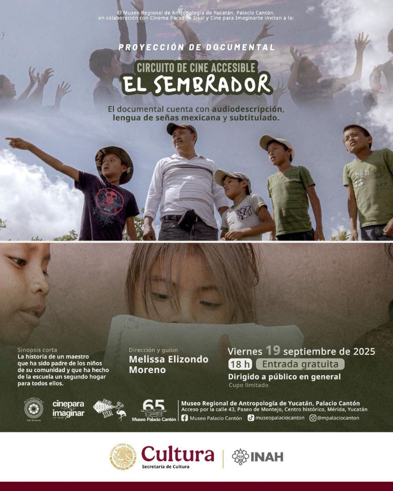 En el marco del Día Internacional de las Lenguas de Señas, proclamado el 23 de septiembre de 2017, por la Organización de las Naciones Unidas, se proyectará un documental adaptado para personas con discapacidad auditiva y visual, en el Museo Regional de Antropología de Yucatán (MRAY), Palacio Cantón, como parte de la iniciativa Circuito de Cine Accesible.