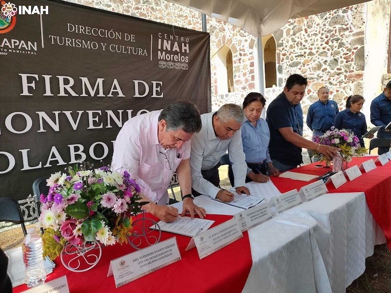 El convenio fue firmado por el secretario técnico del INAH, José Luis Perea González; la coordinadora nacional de Centros INAH, Anna Goycoolea Artís; el director del Centro INAH Morelos, Víctor Hugo Valencia Varela; el presidente municipal de Totolapan, Alejandro Alfaro Nolasco; la síndica y el secretario municipal, Flor Lievanos Lima y Cristian Ramos Buendía, respectivamente.