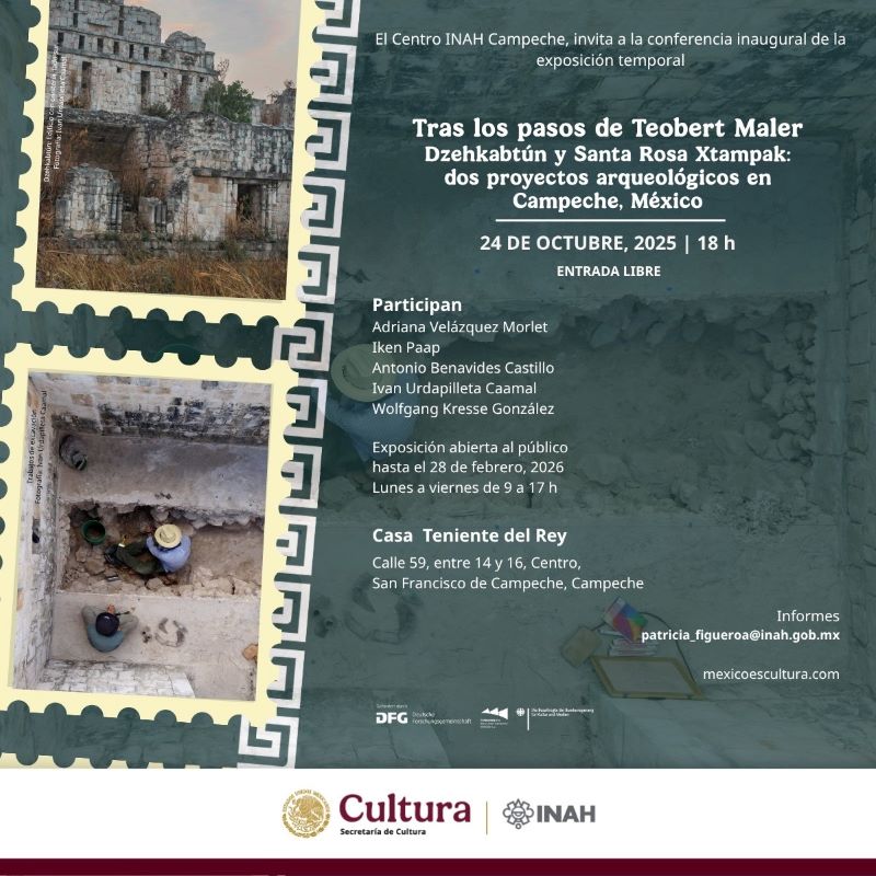 Luego de su exitoso debut en Alemania, donde se presentó entre noviembre y diciembre de 2024, la exposición Tras los pasos de Teobert Maler, Dzehkabtún y Santa Rosa Xtampak: dos proyectos arqueológicos en Campeche, México llega a la Casa Teniente del Rey, sede del Centro INAH Campeche.