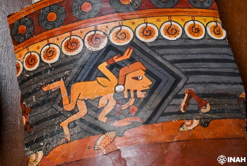 El arqueólogo dijo que el fragmento cerámico es de un cajete grande o apaxtle, hecho entre 1450 y 1500 d.C., el cual comparó con la pintura mural (Altar B) de Tizatlán, donde se observa la representación de una vasija en la que está sumergida una mujer, custodiada por un jaguar bípedo y un águila, y en la parte superior se hallan dioses de la lluvia, lo que da un carácter sagrado a la figura femenina.