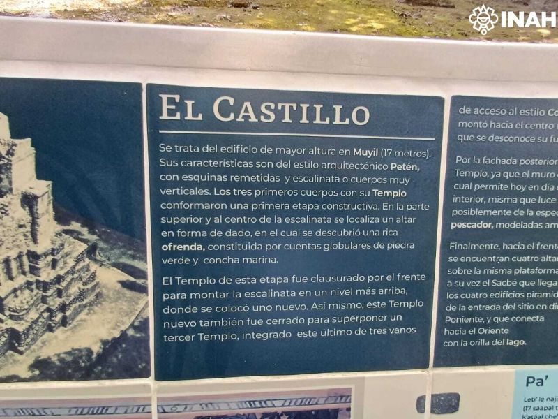 Asimismo, mediante una sala de introducción se presenta la información sobre los trabajos realizados en Muyil, su importancia y los conjuntos arquitectónicos que lo conforman. Este espacio cuenta con cédulas y pantallas que ayudarán a comprender la historia del sitio de manera didáctica.