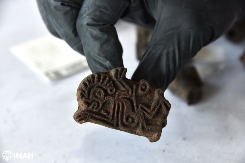 Aunado a tales vestigios, se recuperaron fragmentos de malacates, cajetes, ollas, vasijas, figurillas antropomorfas, navajillas de obsidiana negra, verde, gris y dorada y un sello con la representación de un mono, asociado al dios del viento, Ehécatl.