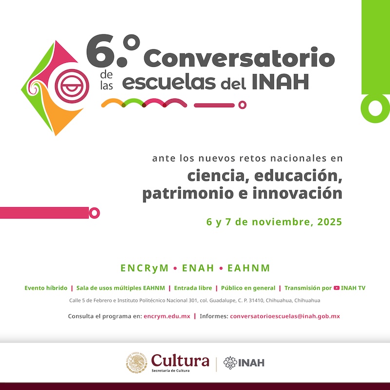 Con la premisa de fomentar un espacio de diálogo, análisis y colaboración entre las tres casas de estudios del Instituto Nacional de Antropología e Historia (INAH), en el que resalten sus aportes en la formación académica, la conservación del patrimonio cultural y su proyección social, este 6 de noviembre de 2025, iniciaron las actividades del 6o Conversatorio de las Escuelas del INAH.