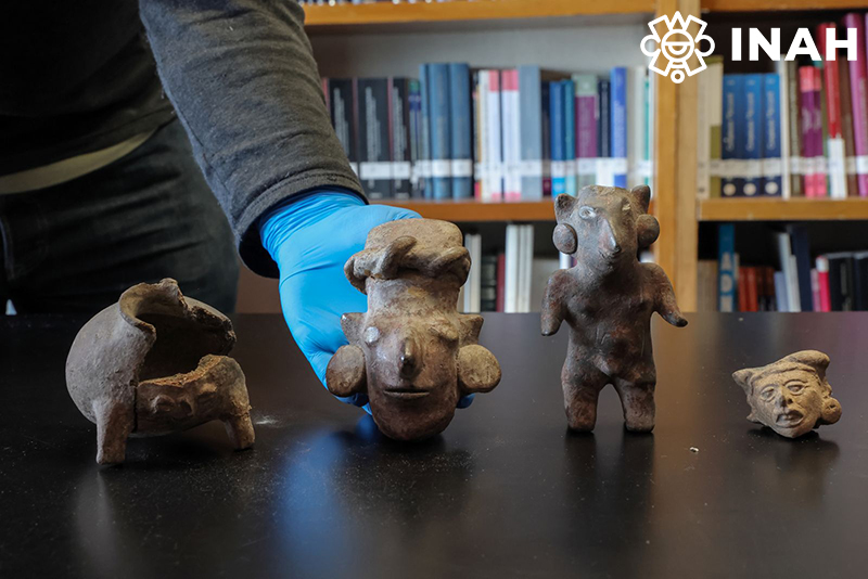 Asimismo, mediante entrega voluntaria al Consulado de México en Raleigh, Estados Unidos, está el caso de 12 piezas, entre figurillas antropomorfas y zoomorfas, así como vasijas procedentes del Altiplano Central, del Occidente y del territorio que hoy ocupa Oaxaca, que datan del periodo Clásico (200-900 d.C.).