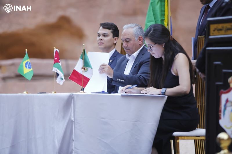 El documento fue signado frente al icónico edificio conocido como Al-Khazneh (El Tesoro), por el jefe comisionado de la PDTRA, Fares Braizat, y la directora de Operación de Sitios del INAH, Vania Carrillo Bosch, con la representación de la Secretaría de Cultura del Gobierno de México, Claudia Curiel de Icaza, y del director general del INAH, Joel Omar Vázquez Herrera.