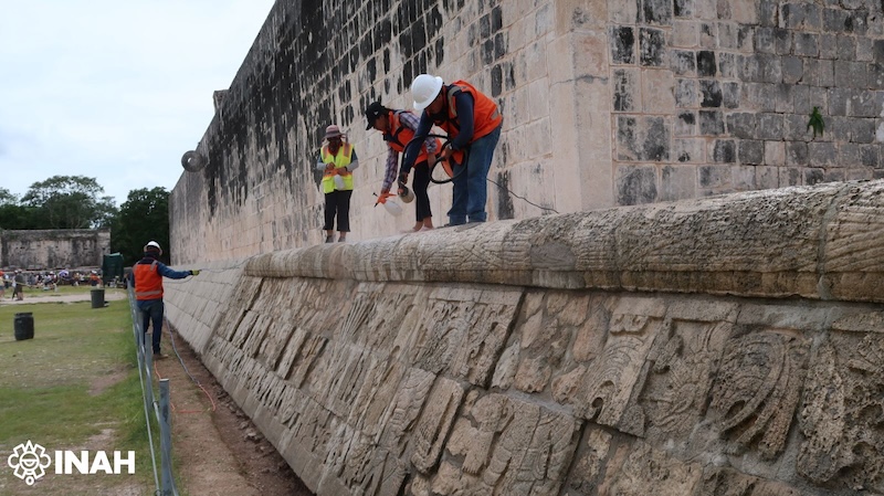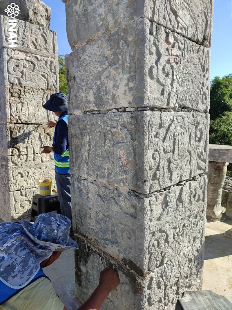 Entre los casos complejos, Ocampo Flores refiere la intervención del Templo Superior de Jaguares, con tratamientos a la pintura mural, y la Subestructura del Templo de Guerreros, con nanomateriales, así como las fachadas del edificio anexo al Conjunto de las Monjas y el Gran Juego de Pelota, que implican grandes volúmenes de trabajo.