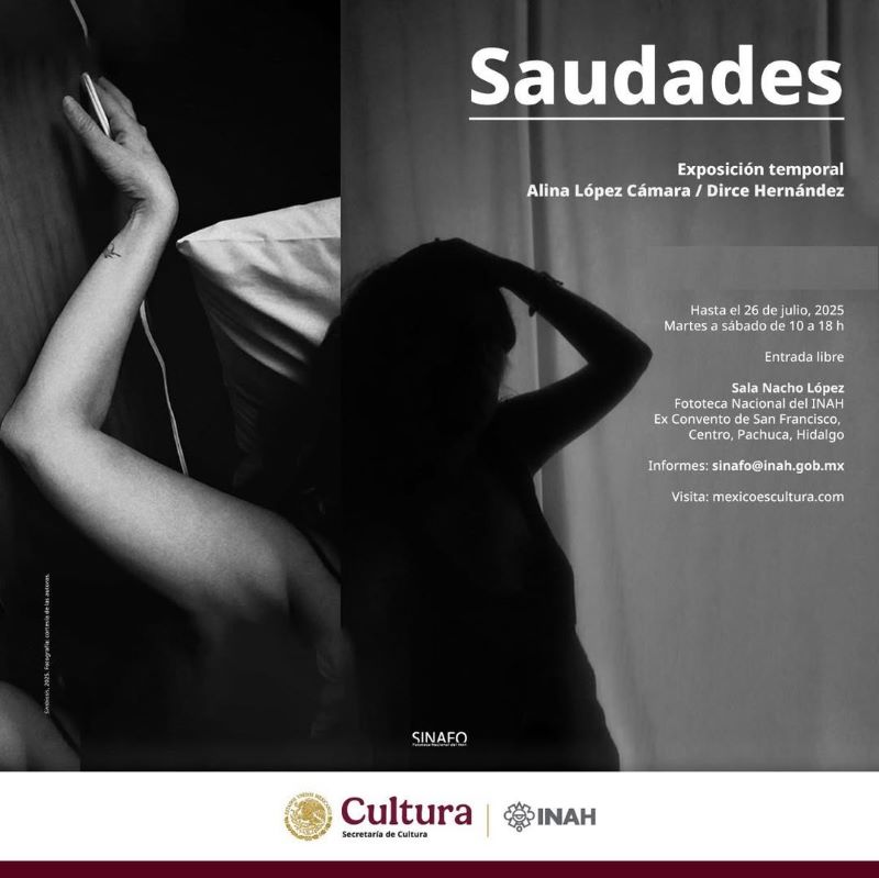 Un diálogo visual sobre los recuerdos, las ausencias y la belleza inherente a la añoranza, a través de la mirada de las fotógrafas Alina López Cámara y Glantz y Dirce Hernández, brinda la exposición Saudades, en la Fototeca Nacional, del Instituto Nacional de Antropología e Historia (INAH), ubicada en el Ex Convento de San Francisco, en Pachuca, Hidalgo.