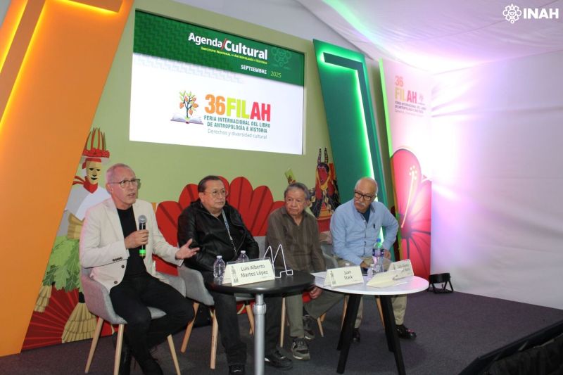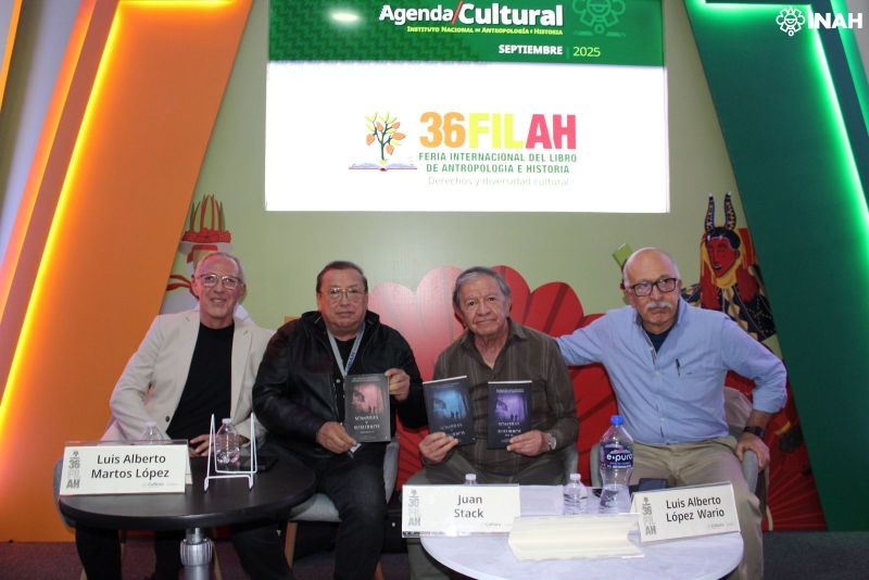 Acompañados del responsable de la Sección de Bioarqueología de la Dirección de Salvamento Arqueológico del INAH, Arturo Talavera González, y del locutor de radio Juan Stack, reflexionaron en torno al camino andado por la triada de volúmenes.