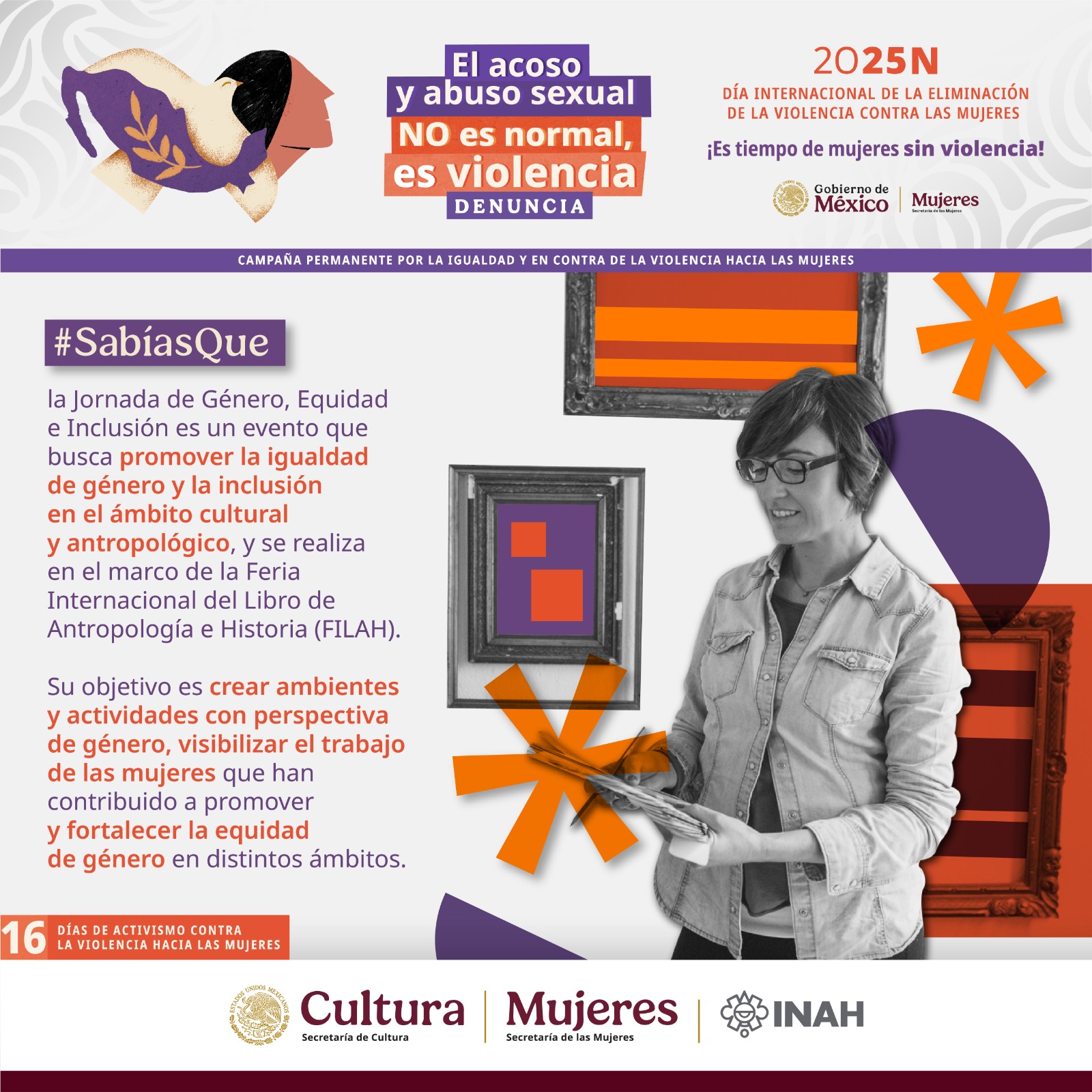 Durante las 16 jornadas de activismo, cada día podrás encontrar contenido nuevo relacionado con las iniciativas y propuestas que el INAH realiza, así como temas que visibilizan y reflexionan sobre la problemática con la finalidad de lograr espacios seguros y equitativos para las mujeres.