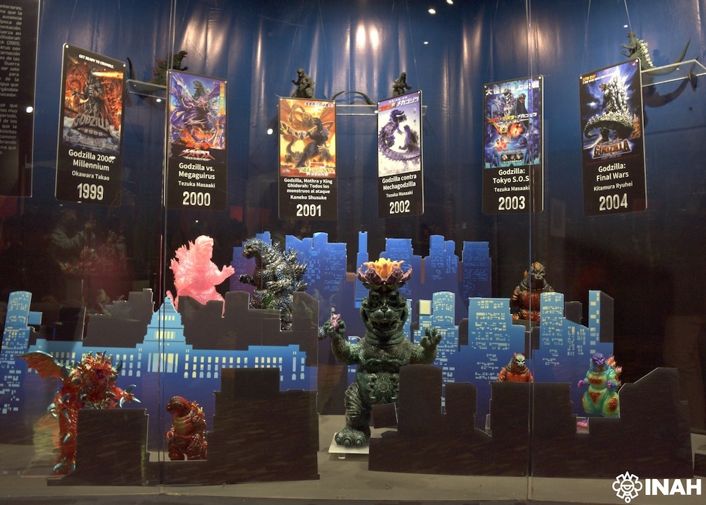 Más de 70 figuras que representan al kaiju, desde su creación en 1954 a la fecha, conforman una exposición gratuita en ese recinto del INAH. Foto: Melitón Tapia, INAH.