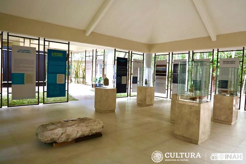 El Museo de Sitio de Calakmul exhibe cerca de 30 piezas arqueológicas, entre las que destacan algunas de las más de 120 estelas recuperadas en sus edificios principales –en ninguna otra urbe maya se ha hallado tal cantidad—, y objetos descubiertos en las labores de salvamento arqueológico en el Tramo 7 del Tren Maya, el cual corre de Escárcega, en Campeche, a Bacalar, en Quintana Roo.