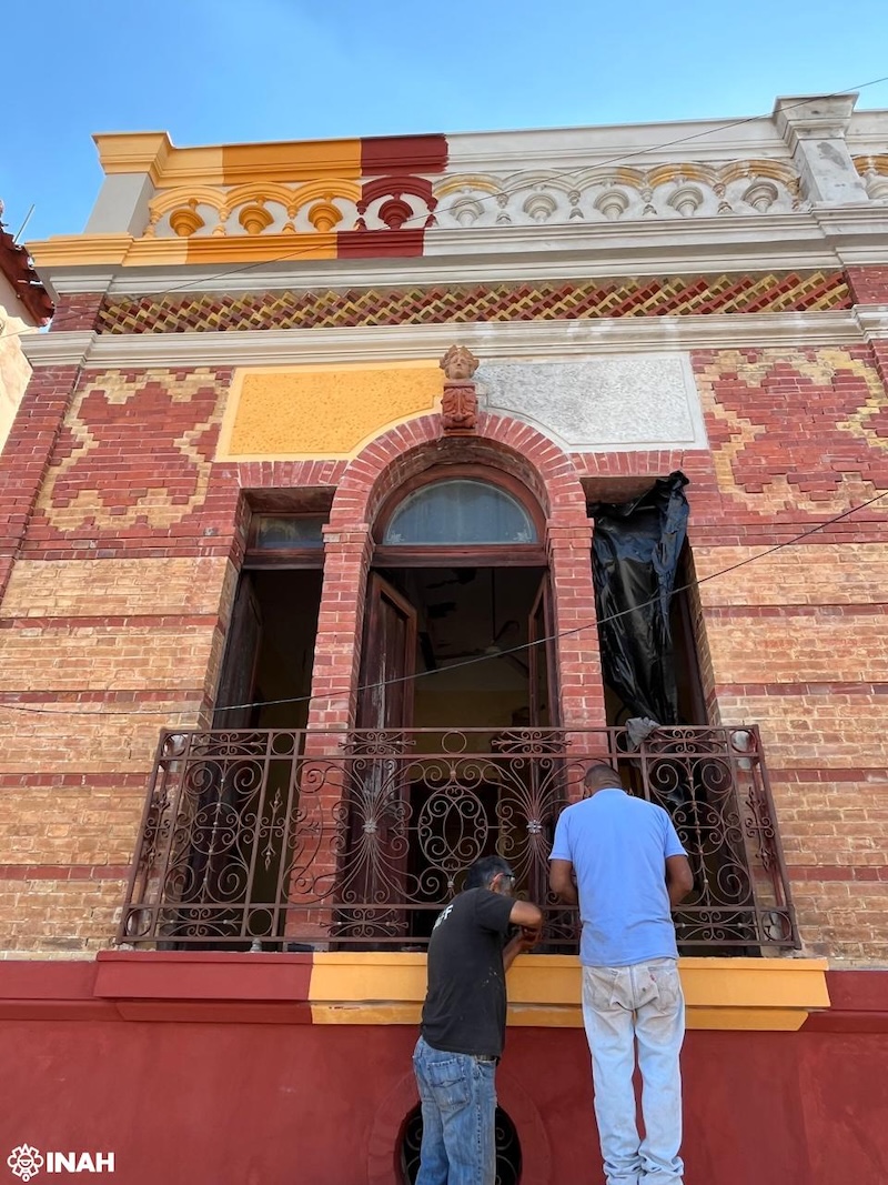 Como explica la coordinadora de la intervención en la Casa Gándara, Cinthya de la Paz Apodaca, esta sobresale del tejido urbano de Tampico por sus tres fachadas con muros de ladrillos rojos y amarillos, y mascarones de barro en su ornamentación.