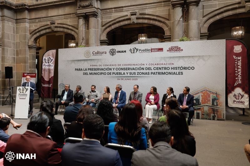 Puebla de Zaragoza, Pue.- La Secretaría de Cultura del Gobierno de México, a través del Instituto Nacional de Antropología e Historia (INAH), y el Ayuntamiento de Puebla signaron un convenio coordinación y colaboración, con el objetivo establecer mecanismos para la salvaguarda y conservación del patrimonio edificado del Centro Histórico y zonas patrimoniales municipales.