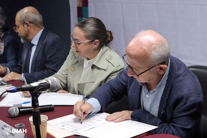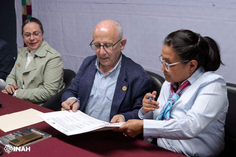 En la firma del convenio estuvieron los coordinadores nacionales de Conservación del Patrimonio Cultural y de Arqueología, Thalía Velasco Castelán y Francisco Mendiola Galván, respectivamente; el director ejecutivo de Cultura de la alcaldía, Roberto Duran Cortes, y la titular general jurídica, Sandra Ibeth Cardona Pulido.