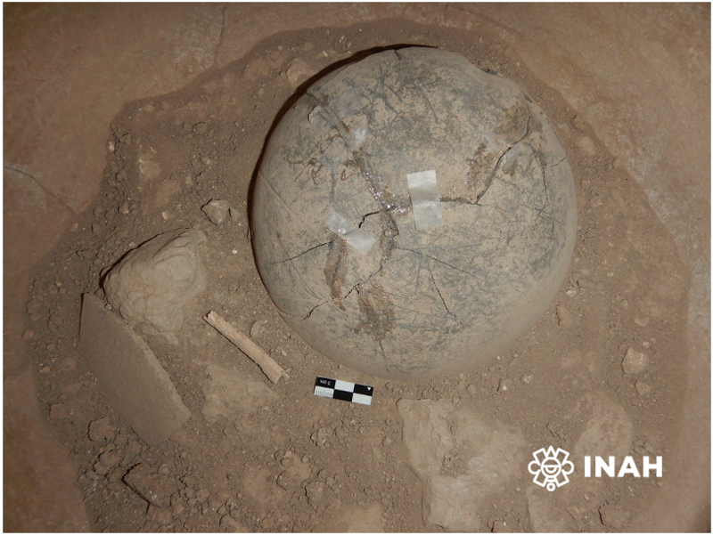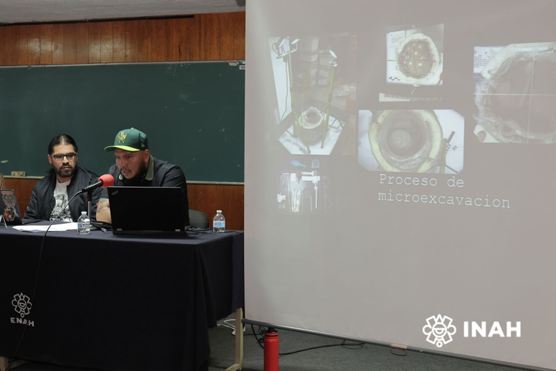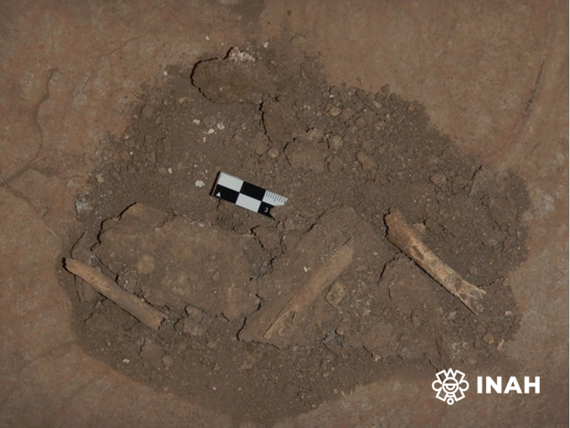 La primera urna, dijo, presentó tres elementos relevantes: los restos de un individuo infantil, de aproximadamente 3 años de edad, acompañado de un cajete matado, es decir, al que se le hacía una fractura intencional para liberar su esencia espiritual; así como un fragmento del cráneo de una persona adulta.