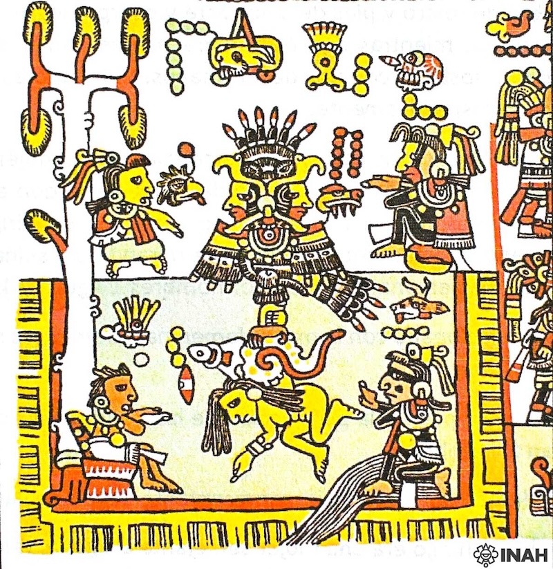 “Esta imagen femenina en contexto acuático la apreciamos en el Códice Nutall, documento de origen mixteco, en la sección que trata sobre la historia de Tilantongo y la genealogía de Teozacoalco. Por ejemplo, la ilustración de la página 16 divisa a la fémina dentro de la vasija/recipiente, con el cuerpo inclinado hacia abajo, con el brazo derecho flexionado hacia abajo y el otro extendido hacia arriba, con cuya mano sujeta las patas de un ser sobrenatural con cuerpo de águila bicéfala, la cual entre los picos abiertos alberga rostros humanos”, explicó.