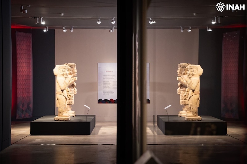 Al finalizar la ceremonia inaugural, la directora del Centro INAH Campeche, Adriana Velázquez Morlet, ofreció un recorrido a las autoridades, quienes pudieron admirar vestigios arqueológicos, como la pareja escultórica ngiwa, la guerrera águila y el guerrero jaguar, recuperados en Tehuacán, Puebla, pieza principal de la exposición.