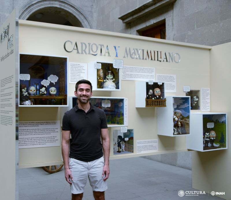A través del uso del kawaii, arte japonés para representar personajes de una manera tierna, el creador de la muestra, Francisco Rivas Penney, imaginó escenas del Segundo Imperio mexicano y el Triunfo de la República.