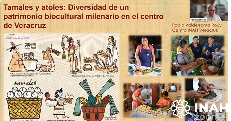 El evento virtual contó con dos conferencias: en la primera, Tamales y atoles: diversidad de un patrimonio biocultural milenario en el centro de Veracruz, del antropólogo social del Centro INAH Veracruz, Pablo Valderrama Rouy, se destacó que este complejo alimentario no es un vestigio pasivo, sino un mecanismo de soberanía vigente.