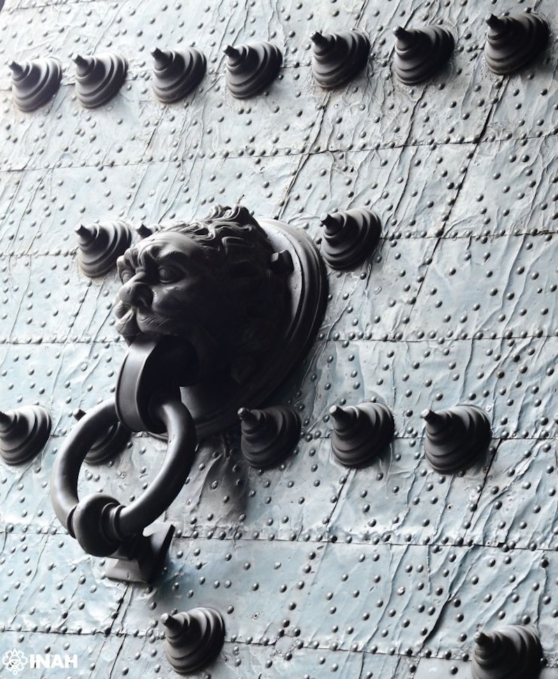 En tanto, el medallón de bronce con el Escudo Nacional, el cual remata la fachada principal (que suplió al original con la imagen de Felipe V, el cual se reubicó en la fachada sur), fue atendido de forma expresa por especialistas del Seminario Taller de Restauración de Metales de la Escuela Nacional de Conservación, Restauración y Museografía, del INAH.