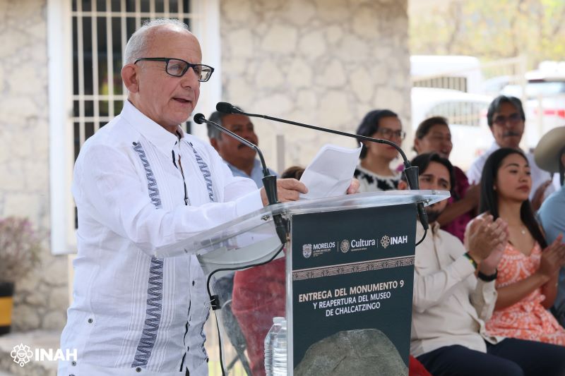 Jantetelco, Mor.- La Secretaría de Cultura del Gobierno de México, a través del Instituto Nacional de Antropología e Historia (INAH), entregó oficialmente el Monumento 9, también conocido como Portal al Inframundo, a la comunidad de Chalcatzingo, en cuyo museo local, recién rehabilitado, el público lo puede admirar.