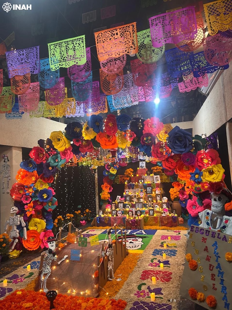 Además, la exposición de una decena de ofrendas escolares en la Puerta 1 de la ZAT y en el Centro de Estudios Teotihuacanos demostró el compromiso de las nuevas generaciones con la memoria y las tradiciones. Cada altar fue una expresión única de respeto, cariño y creatividad.