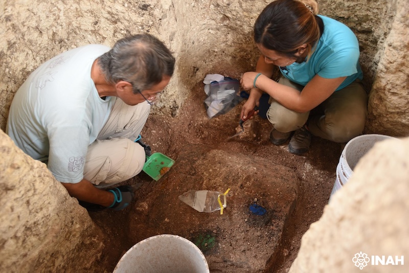 • El hallazgo se registró durante el salvamento arqueológico que realiza el INAH en las obras de infraestructura de carga del Tren Maya