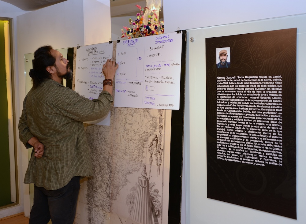 El curso-taller se realizó en el marco de la exposición temporal Jamuychaj, el ritual de las danzas tradicionales de Bolivia, obra de Soria Uzquiano, la cual ha visitado talleres de gráfica en Aguascalientes, Zacatecas, Oaxaca y la Ciudad de México; en el MCC estuvo disponible hasta el 10 de octubre.