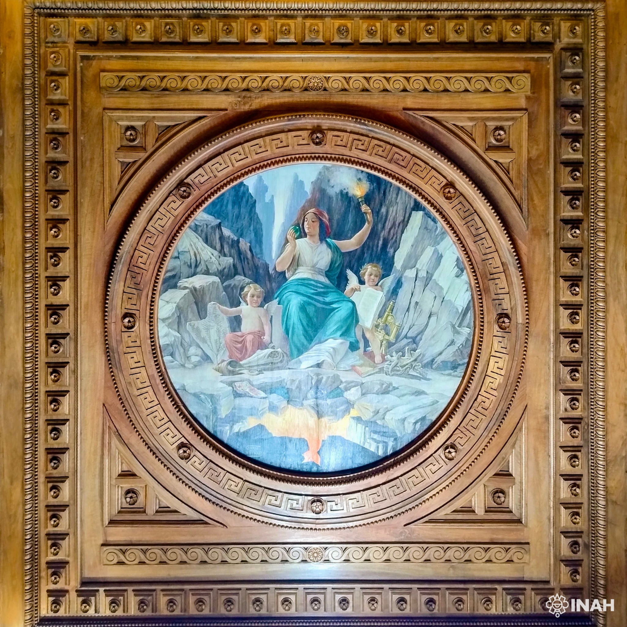 La obra formó parte de la ornamentación original del entonces Instituto Geológico Nacional, inaugurado durante el X Congreso Geológico Internacional, en un elegante edificio porfiriano. En su composición se aprecian cráneos fósiles, conchas, formaciones minerales y libros, símbolos que remiten a disciplinas como la paleontología y la mineralogía.