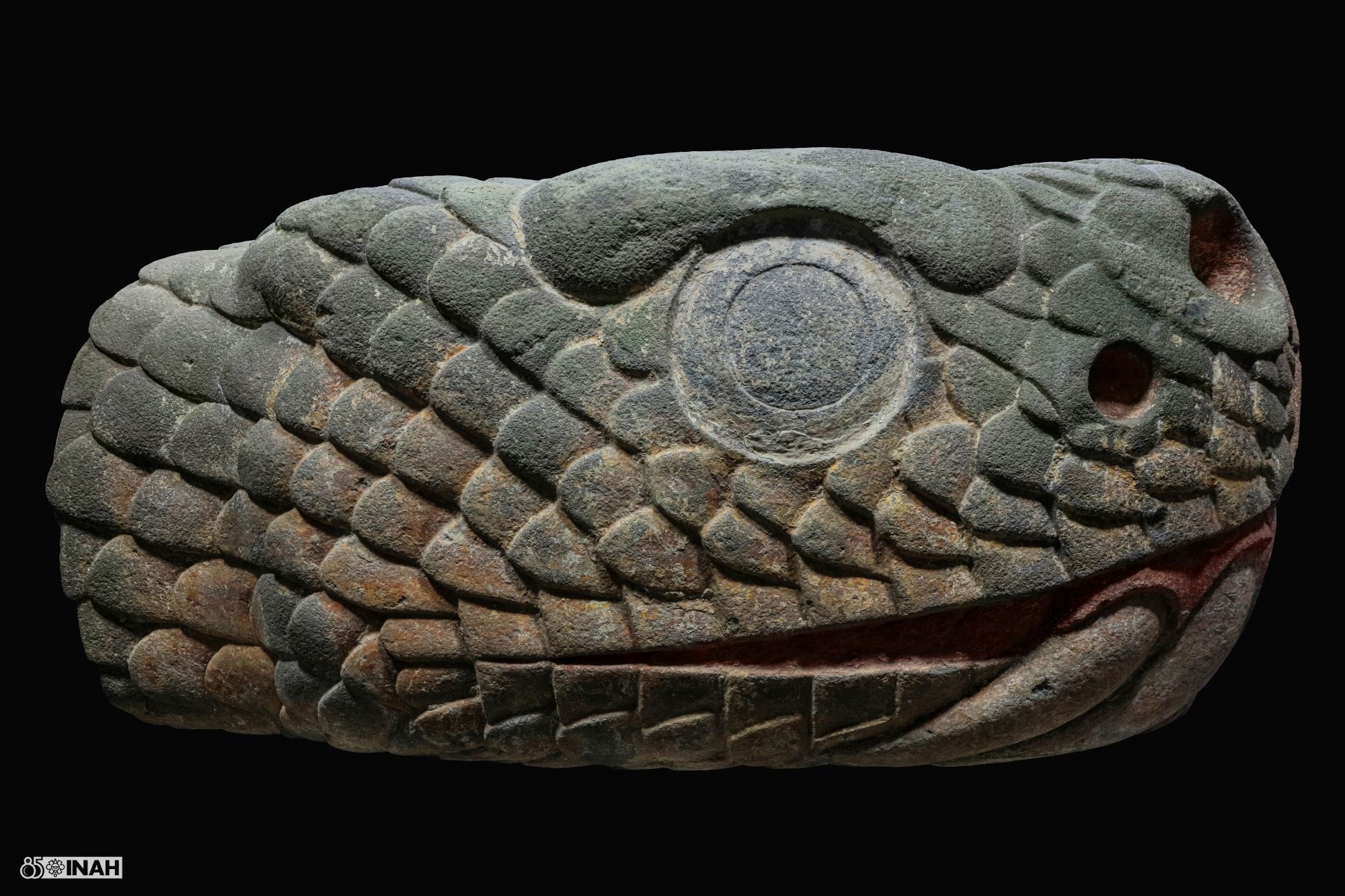 Esta extraordinaria pieza permaneció oculta durante 500 años bajo una mezcla de lodo y agua, lo que contribuyó a conservar gran parte de su estuco y colores originales. Los rastros de pigmentos ocre, rojo, azul, negro y blanco son visibles todavía en el 80 % de su superficie, lo que la convierte en la escultura mexica con forma de serpiente con mayor policromía documentada hasta ahora.