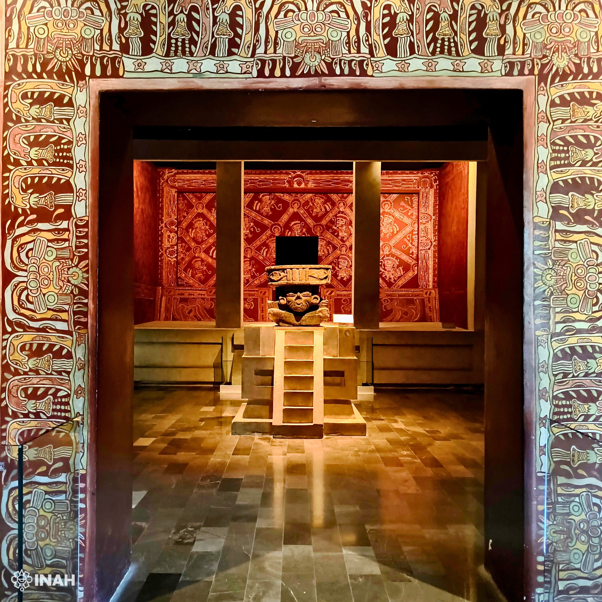 Entre los vestigios de la antigua ciudad de Teotihuacan, el arqueólogo Leopoldo Batres halló, a inicios del siglo XX, esta escultura de Huehuetéotl, el dios viejo del fuego. Tallada en andesita gris, se dice que contaba con orejas desmontables elaboradas en piedra verde. Así, la figura muestra a un anciano sentado con las piernas cruzadas y las manos sobre las rodillas, que sostiene sobre su cabeza un brasero decorado con barras y rombos.
