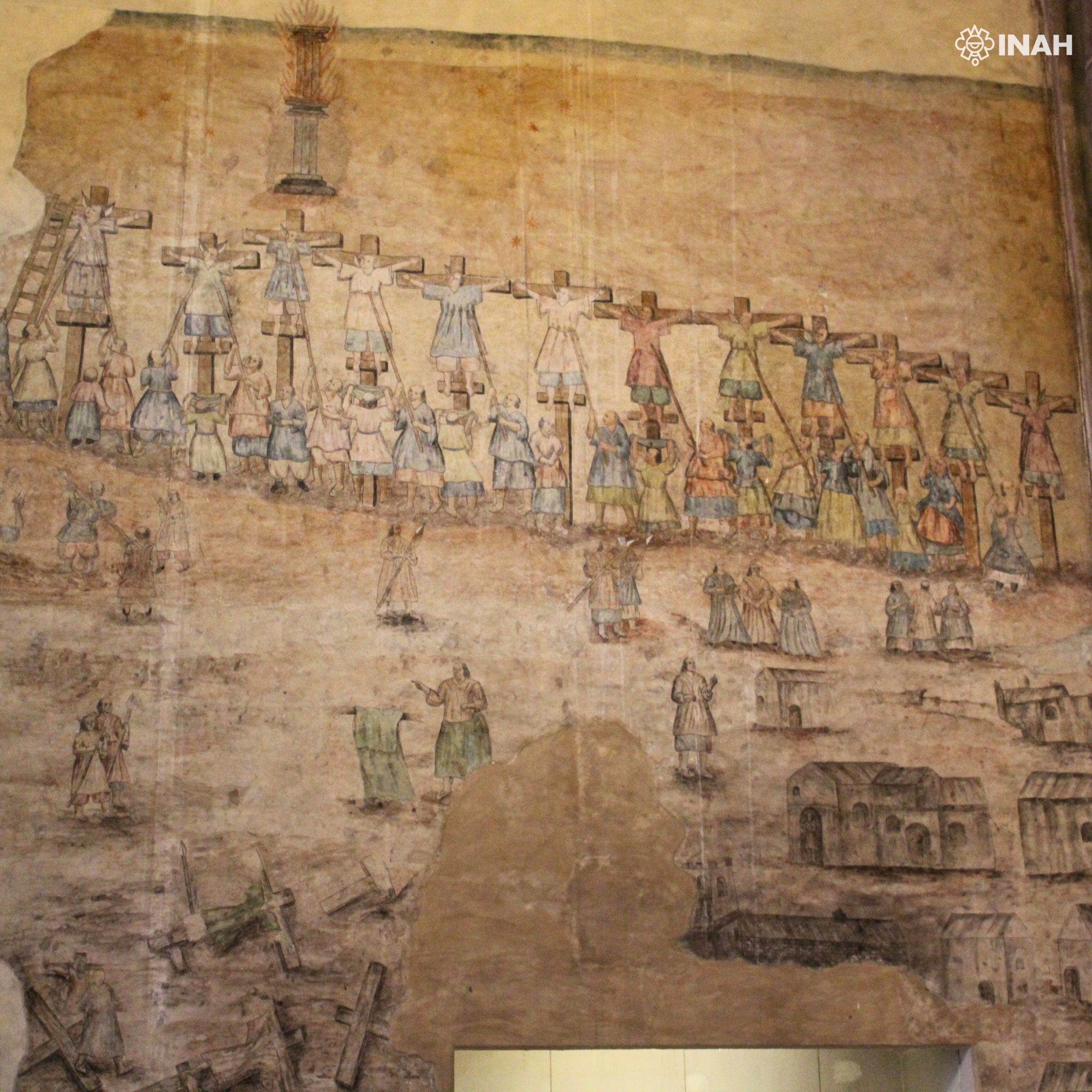 En la nave central de la catedral de Cuernavaca, Morelos, un conjunto de frescos redescubiertos en 1955 narra uno de los episodios más trascendentes del cristianismo novohispano: el martirio de los misioneros que partieron de la Nueva España rumbo a Asia con la esperanza de evangelizar aquellas tierras. Entre ellos se encontraba fray Felipe de Jesús, primer santo mexicano.