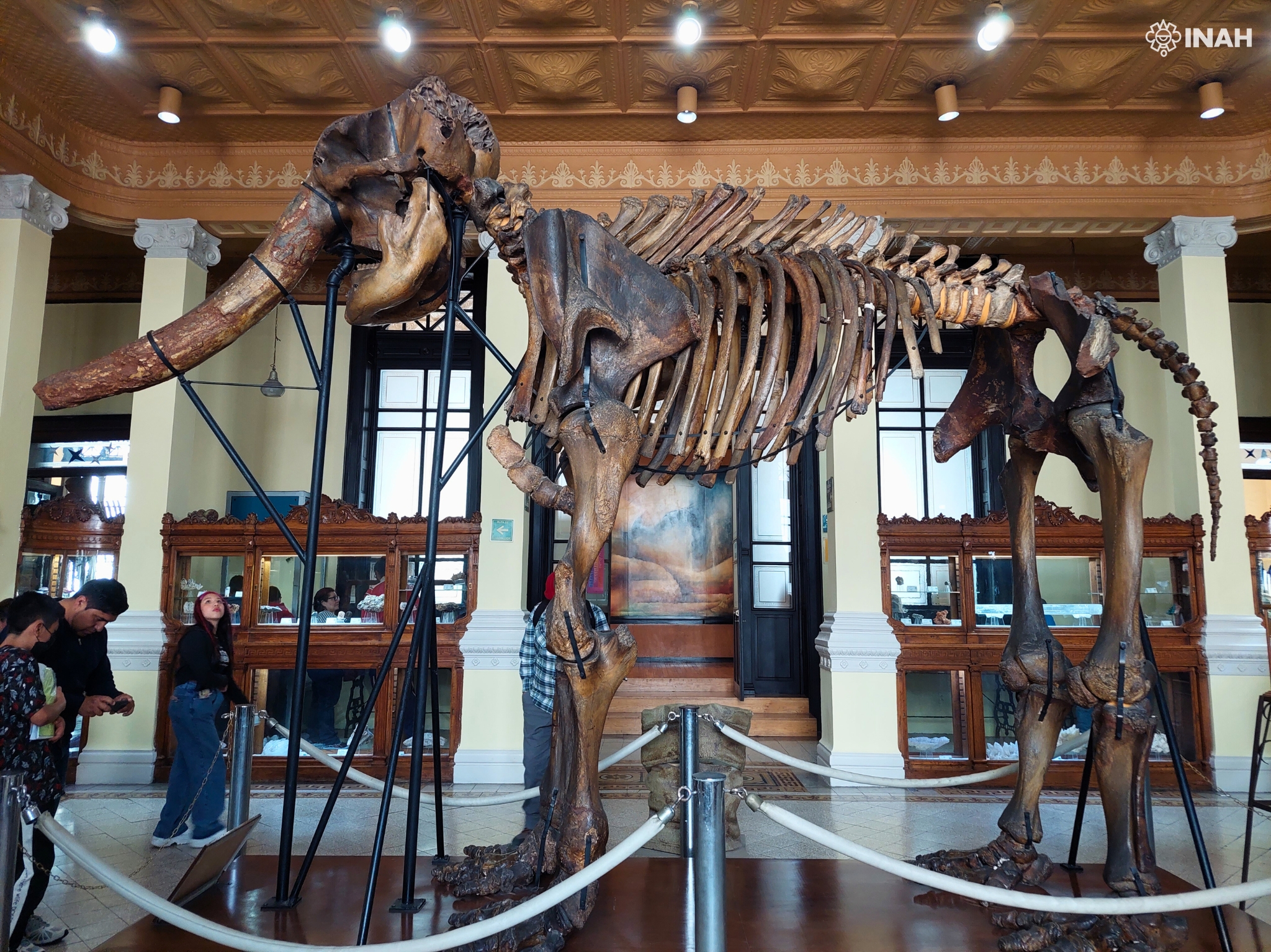 Entre sus piezas más emblemáticas se encuentra la reconstrucción de un mamut a partir de restos de 12 ejemplares, cuya presencia impone por su escala, pero también por lo que representa: una ventana al pasado remoto del Valle de México, cuando enormes criaturas recorrían sus planicies.