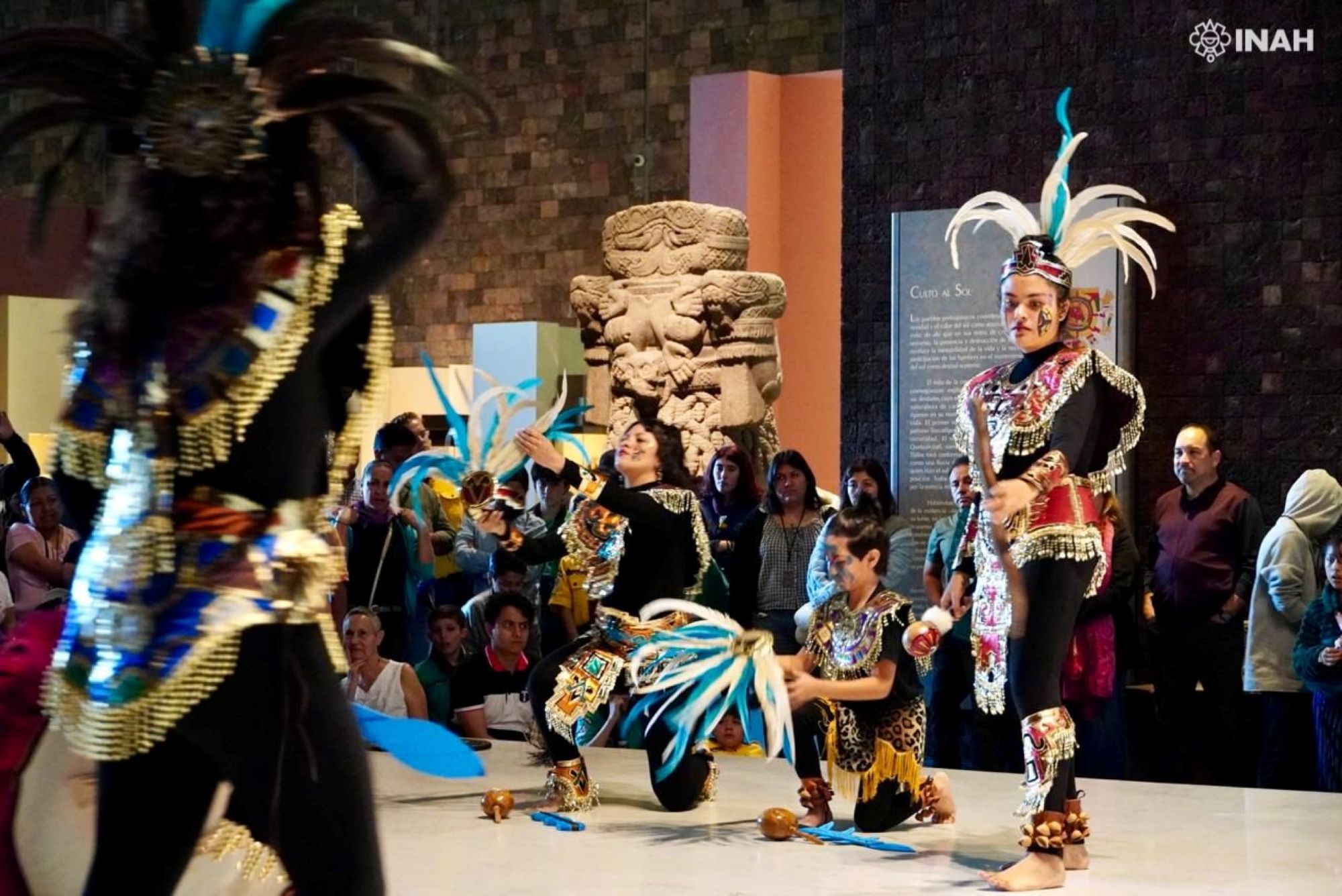 En el marco de la 36 Feria Internacional del Libro de Antropología e Historia, la Sala Mexica del Museo Nacional de Antropología se convirtió en escenario para la acción escénica ¡Yo luna, yo Coyolxauhqui!. Entre luces y sombras, un grupo de mujeres representó el mito mexica del nacimiento de Huitzilopochtli y la muerte de la diosa lunar, cuya imagen permanece plasmada en el monolito descubierto en el Templo Mayor.