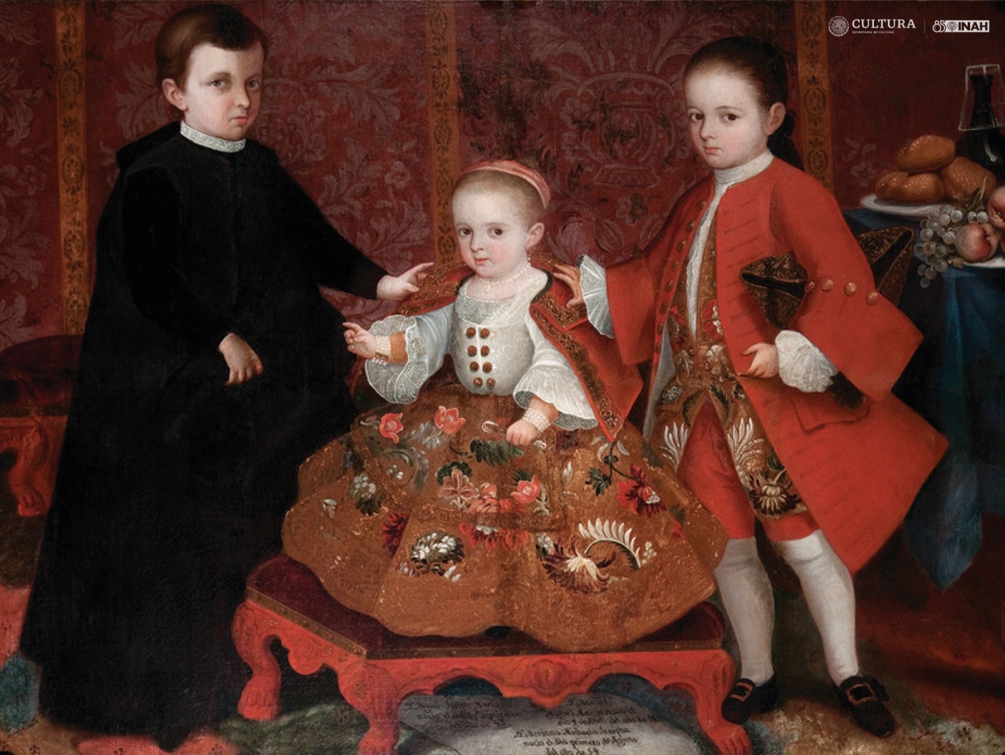 En este óleo del siglo XVIII se observan a tres niños novohispanos de estrato social alto. Una de las particularidades del cuadro es que los niños visten con indumentaria propia de adultos: el de la izquierda un traje de sacerdote y el de la derecha ropa civil, lo que podría entenderse como los papeles que asumirían en el futuro dentro de la sociedad novohispana.