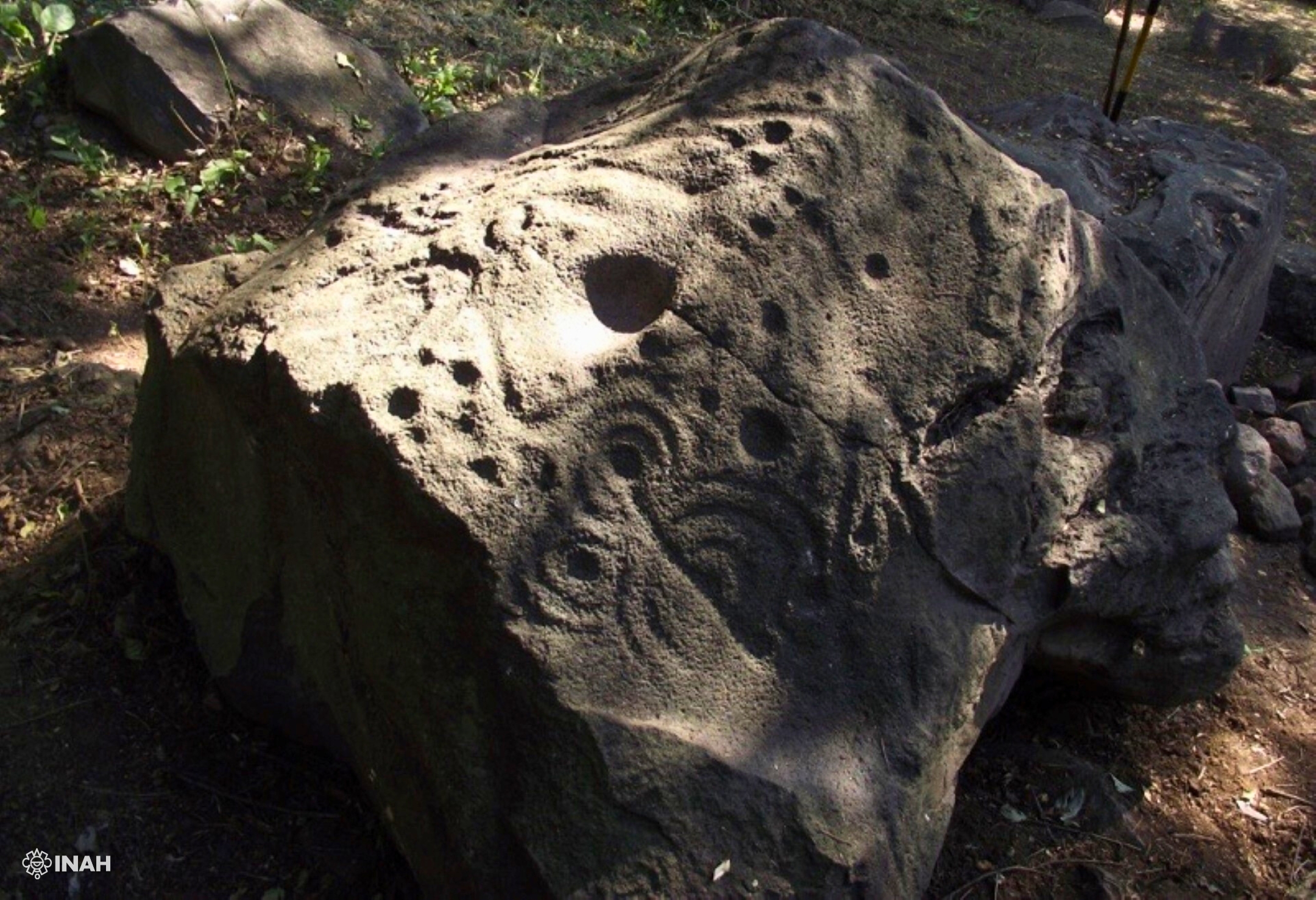 Entre el vasto patrimonio arqueológico preservado en el sitio se encuentra también manifestaciones de gráfica rupestre. Hasta ahora se han registrado 108 petroglifos con una sorprendente diversidad de formas, tamaños y estilos. Algunos muestran rostros humanos y animales, flores, corazones, numerales y figuras zoomorfas como monos, aves o serpientes; otros llegan a pesar varias toneladas. Lo más notable es su amplia cronología, pues van desde el Preclásico (hacia 1700 a.C.) hasta el Posclásico (1521 d.C.), con influencias culturales que incluyen, incluso, rasgos teotihuacanos.