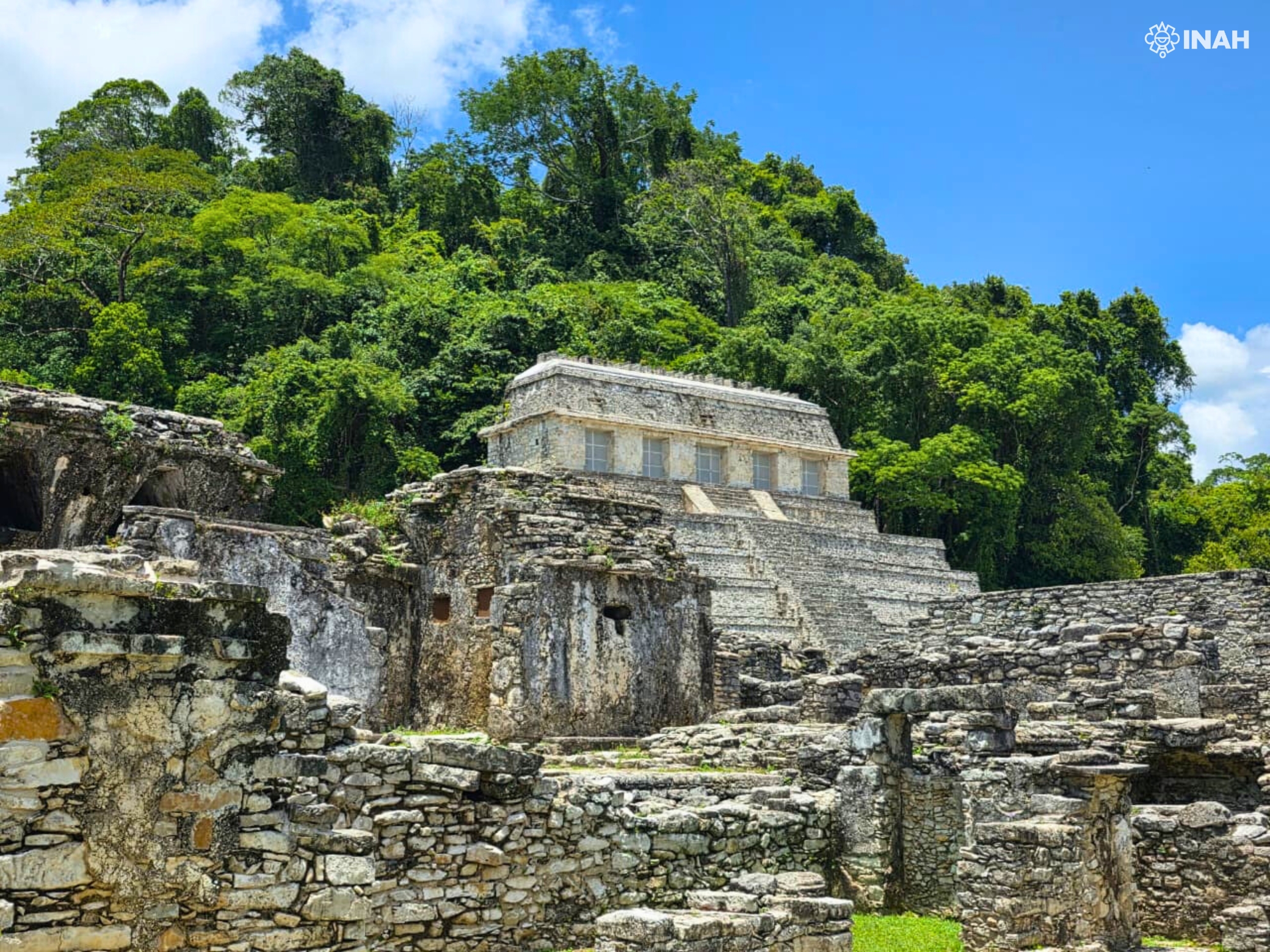 Enclavada en la selva lacandona chiapaneca, se encuentra Lakam Há, más conocida como Palenque, una de las ciudades prehispánicas mayas más notables que han perdurado hasta nuestros días. Sus orígenes se remontan a una pequeña aldea de cazadores y recolectores, que con el tiempo se transformó en un centro político, religioso y cultural de gran relevancia. Entre los siglos VII y VIII d.C., bajo el gobierno de K’inich Janaab’ Pakal y sus sucesores, la ciudad alcanzó su máximo esplendor, dejando un legado arquitectónico y artístico de enorme sofisticación.