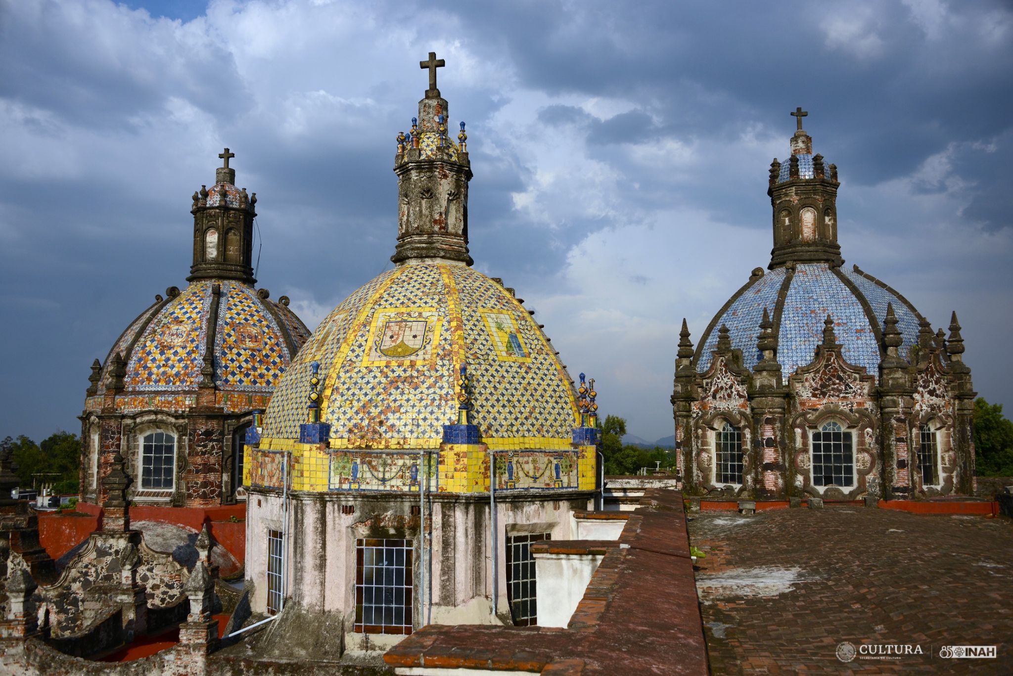 El templo adyacente se levantó entre 1624 y 1626. Para 1628 se daban por terminados los trabajos principales, aunque todavía se continuó laborando en la erección de ala de la enfermería, la barda que limitaba la enorme huerta, los puentes sobre el río de la Magdalena y diversas obras hidráulicas y agrícolas que eran indispensables. Dentro de su ya destacable arquitectura, sobresalen sus tres hermosas cúpulas revestidas con azulejos y con forma de gajos de naranja.